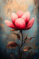 Deze artistieke afbeelding van een magnolia, met zijn delicate roze bloemblaadjes tegen een diepe, blauwe achtergrond, benadrukt de eenvoudige schoonheid en verfijning van de natuur.