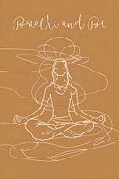 Een minimalistische lijntekening van een vrouw in een meditatieve houding, omgeven door zachte rondingen, straalt een gevoel van rust en innerlijke vrede uit.