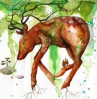 Dit hertachtig dier zweeft in bossige sferen. Het beeld past perfect in de woonkamer, slaapkamer of eetkamer. Voor allen die de natuur waarderen, missen of bewonderen.