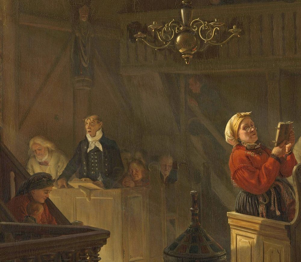 Adolph Tidemand,Dienst in een Noorse landelijke kerk