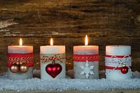 Koop de foto Advent en Kerstmis brandende kaarsen met versiering op sneeuw van Alex Winter als print op canvas, aluminium dibond, (ingelijste) fotoprint, behang en ArtFrame. Voor jou op maat geprint in Fine-Art kwaliteit.