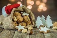 Advent en Kerstmis compositie met voedsel, snoep, kerst ornamenten van Alex Winter