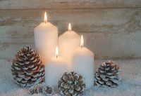 Advent- en kerstkaarsen met versiering, sneeuw van Alex Winter