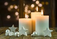 Koop de foto Advent- en kerstkaarsen met witte stervormen van Alex Winter op canvas, aluminium dibond, (ingelijste) fotoprint, behang en ArtFrame, op maat geprint in Fine-Art kwaliteit.
