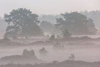 Het najaar in het Drentse landschap kan heel mooi zijn met veel mist. Zo ook deze dag in september in Aekingerzand met mooie lagen in het landschap.