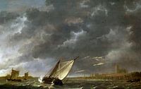 Koop dit schilderij Aelbert Cuyp, De Maes bij Dordrecht bij een storm van Atelier Liesjes als reproductie op canvas, aluminium dibond, (ingelijste) fotoprint, behang en ArtFrame, op maat geprint in Fine-Art kwaliteit.