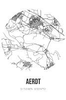 Zwart-witte landkaart, stratenplan of plattegrond van Aerdt. Aerdt is gelegen in de Achterhoek, in de gemeente Zevenaar, provincie Gelderland. Op de stadskaart zijn alle openbare wegen in Aerdt opgenomen. Verder is de kaart voorzien van de coördinaten van het centrum van Aerdt.