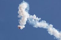Aerobatica demonstratie op een luchtshow met veel rook voor een helderblauwe lucht