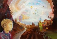 Het surrealistische olieverfschilderij maakt indruk met zijn meesterlijke penseelvoering en voert de kijker mee naar een wereld vol kleine wonderen en fascinerende fictie. Het schilderij toont vliegende bomen, mensen die schijnbaar gewichtloos in de lucht zweven en een vrouw die moeiteloos in de lucht lijkt te zweven. Surrealistische…