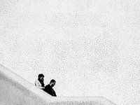Een stel op de trap tegen een mozaïeken achtergrond