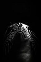 Het eenvoudige maar expressieve gezicht van een zeehond rijst op in een fascinerend spel van licht en schaduw. Zijn zachte contouren en fijne snorharen geven hem een majestueuze uitdrukking die onmiddellijk in het oog springt. Ideaal voor in de woonkamer, waar het een gesprek stimuleert en een ontspannen sfeer creëert.