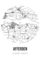 Zwart-witte landkaart, stratenplan of plattegrond van Afferden. Afferden is gelegen in regio Rivierenland, in de gemeente Druten, provincie Gelderland. Op de stadskaart zijn alle openbare wegen in Afferden opgenomen. Verder is de kaart voorzien van de coördinaten van het centrum van Afferden.