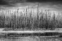Tussen Boya Lake en Watson Lake in het noorden van Canada. Zwart-Wit. Monochroom.
