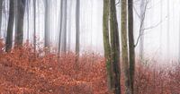 Overblijfselen van rood bladerdek in een winters bos