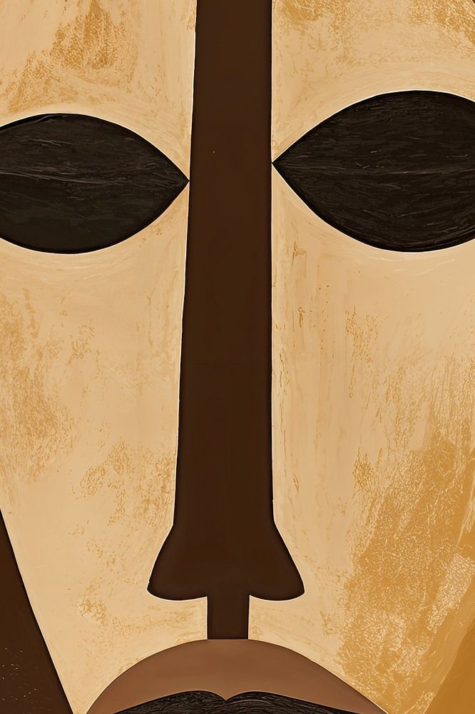Een minimalistisch, kubistisch en abstract schilderij met Afrikaanse kunst