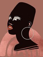 Digitale illustratie van een portret van een vrouw in heldere maar aardse kleuren.