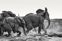 Afrikaans olifanten (Loxodonta-africana) drinken en spelen in het water van het Nationale Park van Etosha, Namibië