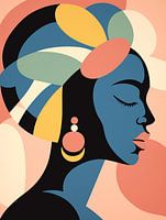 Zachte vormen en kleuren. Een vrouw uit Afrika met Moderne hoofddoek kleurig en Organische vormen.