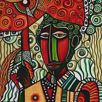 Dit werk in een figuratieve en expressionistische stijl geschilderd in acrylverf heeft als onderwerp felgekleurde…