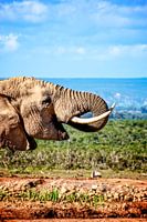 De Afrikaanse olifant is waarschijnlijk het meest bekende dier van Afrika. Met name mannetjes kunnen wel 3,3 meter hoog worden en dragen soms slagtanden van meer dan een meter. Het zwaarste landdier ter wereld leeft in groepen van diverse dieren, variërend van twee tot tientallen. Deze is gefotografeerd in Addo Elephant Park.
