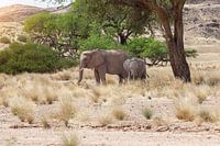Afrikaanse woestijnolifant met jong onder een boom in Namibië