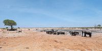 Koop de foto Afrikaanse olifanten (Loxodonta Africana) in Hwange National Park bij een waterpoel van Kees van den Burg als print op canvas, aluminium dibond, (ingelijste) fotoprint, behang en ArtFrame. Voor jou op maat geprint in Fine-Art kwaliteit.