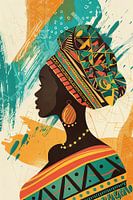 Deze abstracte afbeelding toont het profiel van een Afrikaanse vrouw in traditionele kleding, kunstig weergegeven in heldere kleuren en geometrische patronen. De opvallende vormen en het harmonieuze kleurenpalet benadrukken de culturele diversiteit en elegantie, terwijl de smaakvol gerangschikte accessoires haar gratie en waardigheid benadrukken. Deze moderne interpretatie van traditionele Afrikaanse esthetiek is een perfect kunstwerk voor liefhebbers van levendige, cultureel geïnspireerde kunst die een vleugje exotisme en creativiteit willen toevoegen aan hun ruimte.