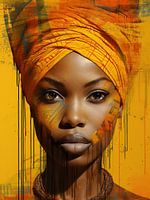 Dit Portret van een Afrikaanse vrouw geel gekleurd met lijnen siert de muur en knalt eruit! Afrikaanse vrouwen zijn sterk, trots en mooi.