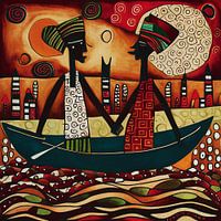 Neem even de tijd om je onder te dompelen in Jan Keteleer's schilderij Afrikaanse vissers slaan de handen ineen. Dit kunstwerk, geschilderd in een figuratieve expressionistische stijl met acrylverf op paneel, verbeeldt de dagelijkse gebeurtenissen van Afrikaanse vissers. Ons huidige leven geeft ons vaak het gevoel dat we losgekoppeld en uitgeput zijn, wat dit schilderij zo relevant maakt. Het beeld van vissers die samenkomen als één resoneert diep en herinnert ons aan de vreugde en vrede die harmonie kan brengen.