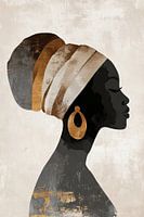 De afbeelding toont een minimalistische en elegante digitale weergave van het silhouet van een Afrikaanse vrouw.