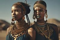Portretten uit Afrika. Dit werk is onderdeel van de serie "Tribes", zie het album in mijn shop voor meer portretten. Je ziet twee vrouwen van in een combinatie van moderne en traditionele kleding en met authentieke sieraden. Een prachtig werk voor aan je muur!