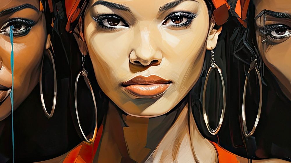 Dit eigentijdse kunstwerk presenteert drie Afrikaanse vrouwen in een levendige stijl. De levendige kleuren en gedurfde penseelstreken waarmee de vrouwen zijn geportretteerd, geven het schilderij een krachtige en expressieve uitstraling.