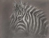 Koop Afrikaanse zebra getekend met pastelkrijt . van Ineke de Rijk op canvas, aluminium dibond, (ingelijste) fotoprint, behang en ArtFrame, op maat geprint in Fine-Art kwaliteit.