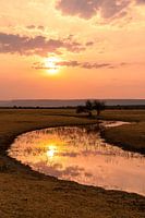 Zonsondergang in Namibië, Afrika. De ondergaande zon reflecteert mooi in het meanderende riviertje.
