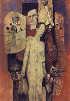 en man en een vrouw (naakt) staan op dit surrealistische portret.