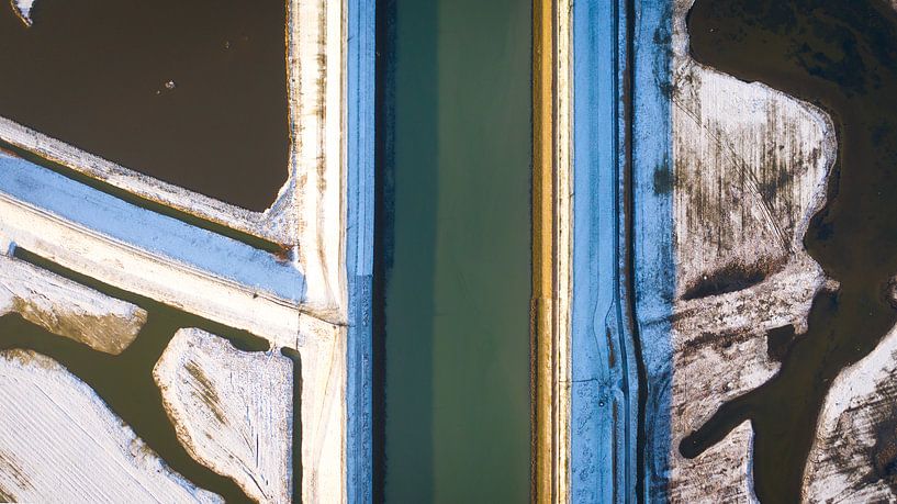 Ik ga graag met drone op pad en zoek - met camera naar beneden - naar unieke lijnen, vormen en figuren in het landschap. Het voordeel hiervan? Al mijn werken zijn zowel horizontaal als verticaal prachtig als decoratie