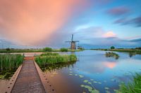 Een half uur na de regenbui trok de lucht open en bescheen de zon de wolken. Dit leverde schitterende kleuren in de lucht op! Door de lange sluitertijd ontstond extra dynamiek in de lucht. Werelderfgoed Kinderdijk (Nederland) op z'n mooist!