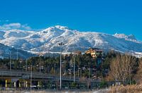 Een huis aan de voet van een besneeuwde berg, aan de rand van Afyonkarahisar