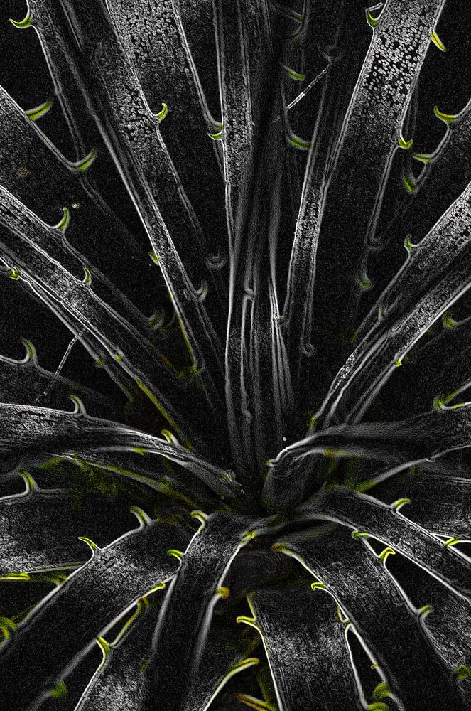 Koop dit bloemen kunstwerk Agave in Black & Yellow van De Rover op canvas, aluminium dibond, (ingelijste) fotoprint, behang en ArtFrame, op maat geprint in Fine-Art kwaliteit.