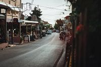 De hoofdstraat van het Griekse dorp Agios Gordios is versiert met kleurrijke elementen en ziet er heel gezellig uit met alle restaurantjes en winkeltjes. Agios Gordios is een vakantieoord aan de westkust van het Griekse eiland.