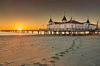 Koop de foto Ahlbeck pier bij zonsopgang van Stefan Dinse op canvas, aluminium dibond, (ingelijste) fotoprint, behang en ArtFrame, op maat geprint in Fine-Art kwaliteit.