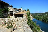 Aiguèze, genesteld op de top van een klif, biedt een uitzonderlijk panorama op het omliggende platteland. De vestingwerken, overblijfselen van een rijk middeleeuws verleden, vormen een harmonieus geheel met de weelderige vegetatie rondom het dorp.