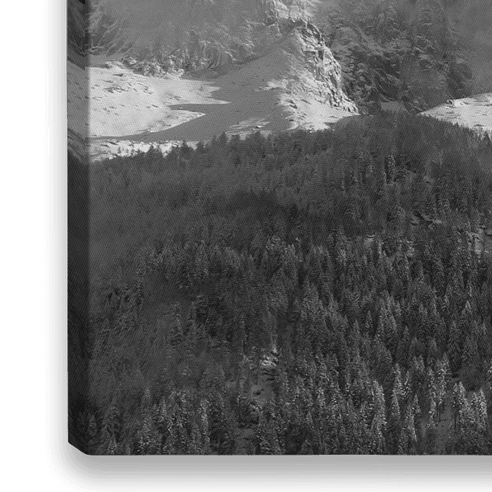 Verse sneeuw en wolken zetten de Aiguilles de Chamonix in een sfeervolle setting. Deze bergen van rots liggen in de Mont Blanc vallei van de Franse Alpen. Zwart-wit foto.
