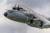 Flyby van de Airbus A400M van het Tactical Display Team van de Franse Luchtmacht tijdens de airshow van Albert in augustus 2021.