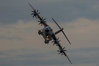 Flyby van de Airbus A400M van het Tactical Display Team van de Franse Luchtmacht tijdens de avondshow van Albert op 20 augustus 2021.