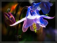 Digitale bewerking van een close-up van de blauwe bloem van de Akelei.