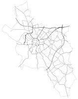 Een minimalistische plattegrond met het stratenplan en de omlijning van Aken, Noordrijn-Westfalen, Duitsland.