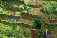 Landbouw terrassen met kroppen sla en andere groenten op Madeira, Portugal.