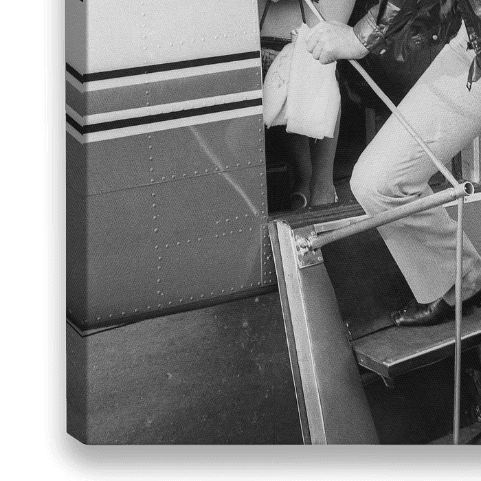 Op de luchthaven van Nice nemen Alain Delon en Romy Schneider het vliegtuig om naar Saint Tropez te gaan voor het filmen van de film LaPiscine, 12 augustus 1968Foto © AGIP /