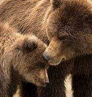 Alaska Bruine Beer (Ursus arctos gyas) in de wildernis van Alaska (United States). Moeder en zoon liefkozend.